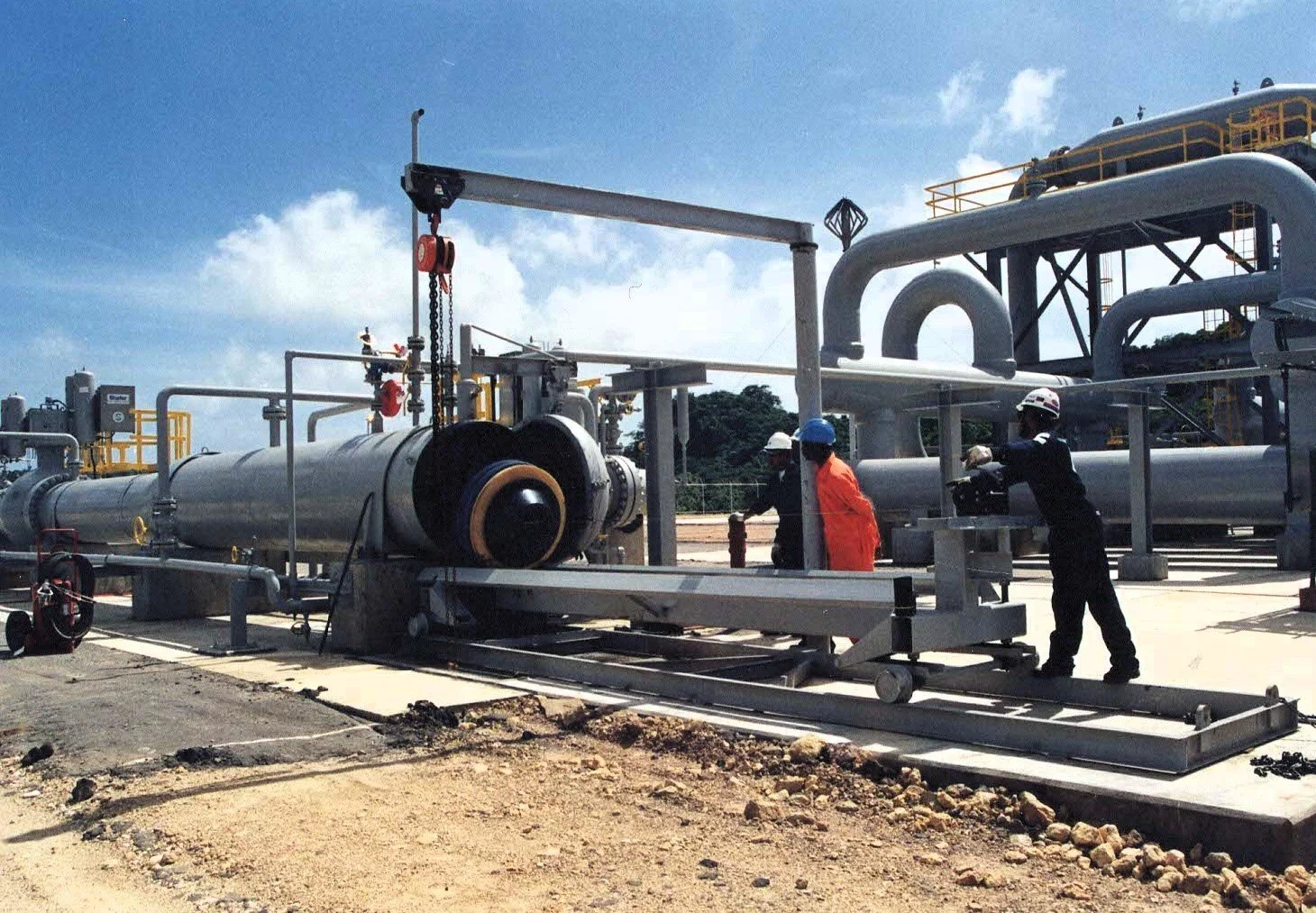 BKW pig trap jib cranes are used to facilitate the loading and unloading of large diameter pigs. Jib cranes can be located on the pig trap tray or off to the side. The crane has a 360° rotation with a hand or motorized hoist. Crane is used in conjunction with the pig trap tray.