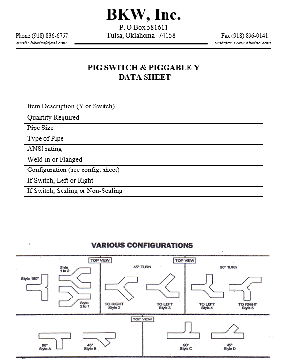 BKW has been providing Piggable Y’s to the pipeline industry for over 30 years. All of our Y’s are custom designed and fabricated to meet the customers’ requirements. The purchase of a Y includes design, fabrication, testing and engineering history. The engineering history pack includes a drawing, MTR's, weld inspection reports on all pressure welds, and hydrostatic test reports.